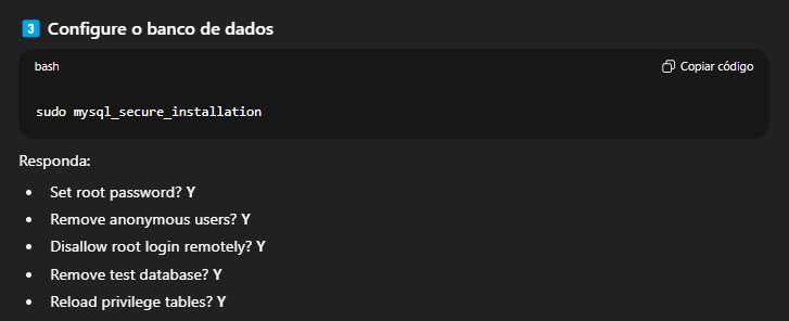 Comando: sudo mysql_secure_installation